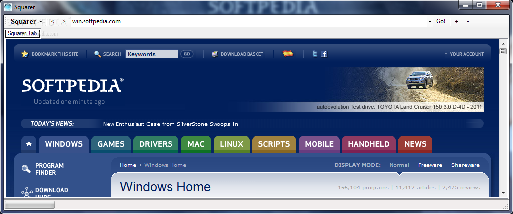 Squarer Navigator is a small, simple, easy to use application specially designed to offer you a tiny web browser.