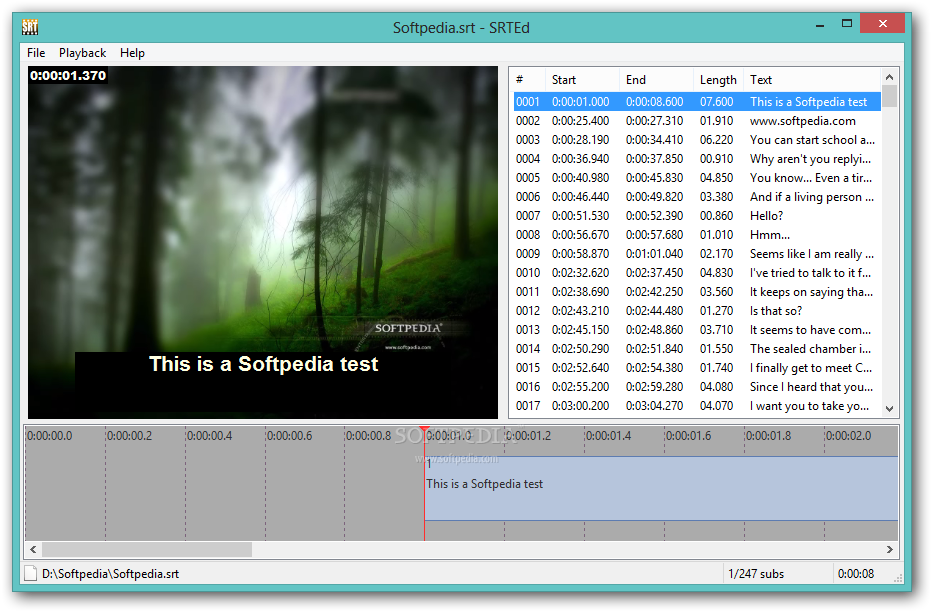 You can download SRTEd which is 387.04 KB in size and belongs to the software category Video. SRTEd was released on 2017-03-28 and last updated on our database on 2017-04-24 and is currently at version 1.3.