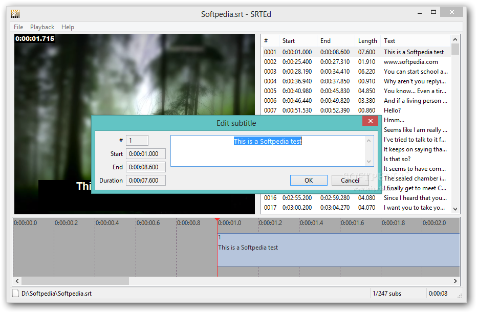 SRTEd is a tiny and portable software application that allows you to fix subtitle files while viewing movies. It comes packed with intuitive options that can be easily figured out by anyone.