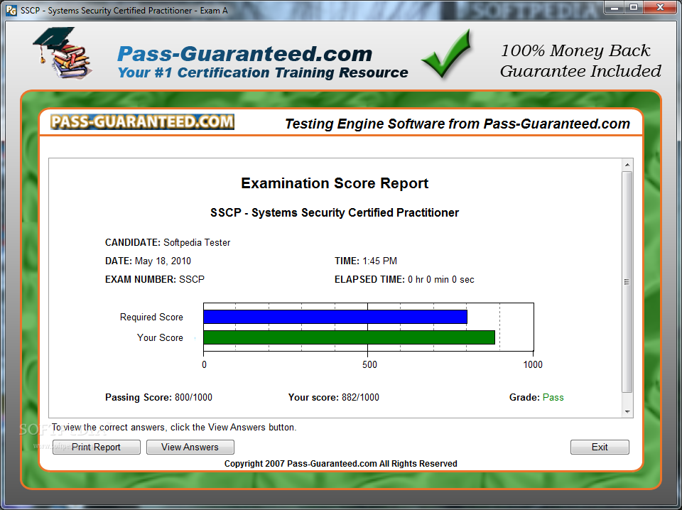 SSCP Practice Exam Testing Engine Software is a demo software by Pass-Guaranteed Inc and works on Windows 10, Windows 8.1, Windows 8, Windows 7, Windows XP, Windows 2000, Windows 2003, Windows 2008, Windows Vista, Windows 2012.