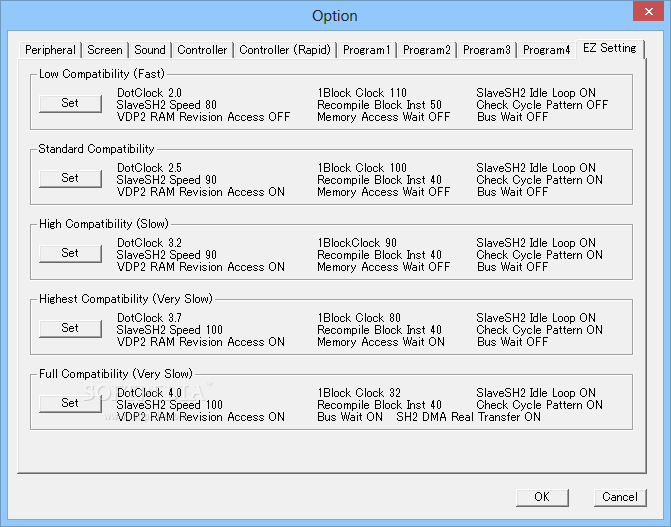 The controller options have two separate tabs dedicated to their tweaking, while from the 'EZ Setting' area you will be able to select the preferred type of compatibility. The available profiles range from Low Compatibility (Fast) up to Full Compatibility (Very Slow).