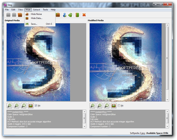 Other important tweaking parameters worth being mentioned enable you to hide random noise within images, embed a user-defined text message, as well as use alpha and RGB channels. Hidden data can be extracted via the program’s interface.