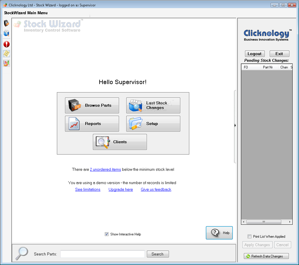 StockWizard Inventory Management Software is a demo software by Clicknology Ltd and works on Windows 10, Windows 8.1, Windows 8, Windows 7, Windows 2012.