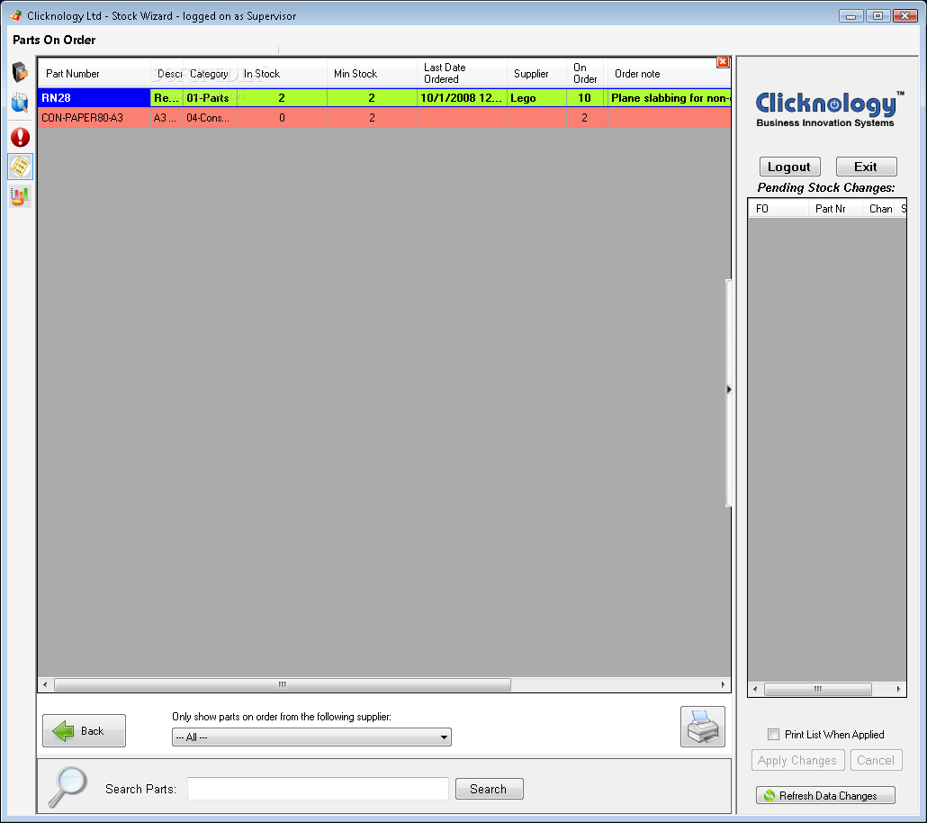 Other features include pictures of parts and checklists, transactions history, print outs, inventory check, easy backup and restore, brand the software with your company name, and logo. You can also manage customers, including recording any customer contacts, manage suppliers, assign parts a location, use serial numbers in stock. Can be run on a single computer or as a network system allowing you to assign different user permissions. All backed-up by our support.Limitations in the unregistered versionThe number of records is limited