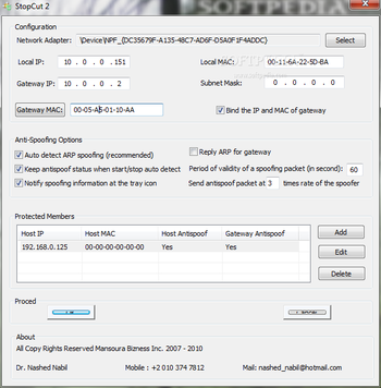 By redirecting your PC ARP to fake destination other members in your network can see your chat logs and activities and even can record your voice chat , so by using Stop cut you can protect your ARP tables from flood and spoofing and prevent redirection to another destination