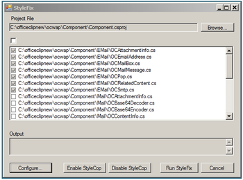The StyleFix application was developed to be a GUI tool that will allow you to selectively exclude / include files for StyleCop violation checks. It also automatically fixes them.