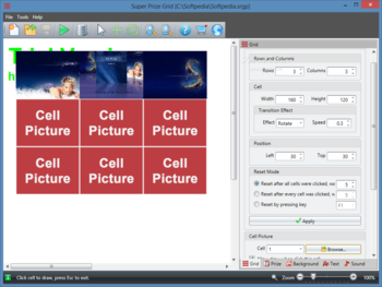 Super Prize Grid is a demo software by SoftRM and works on Windows 10, Windows 8.1, Windows 8, Windows 7, Windows XP, Windows 2000, Windows 2003, Windows 2008, Windows Vista, Windows 2012.