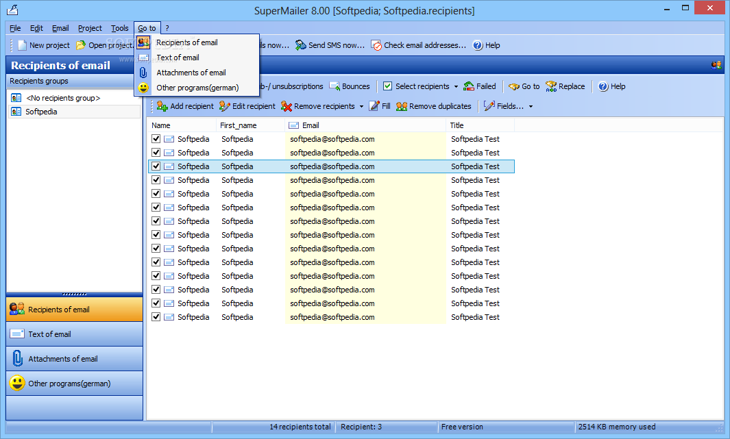 Enables you to send email messages to thousands of recipients (time needed for this action depends on size of the email and the speed of your upload link). SuperMailer also supports IDN names.