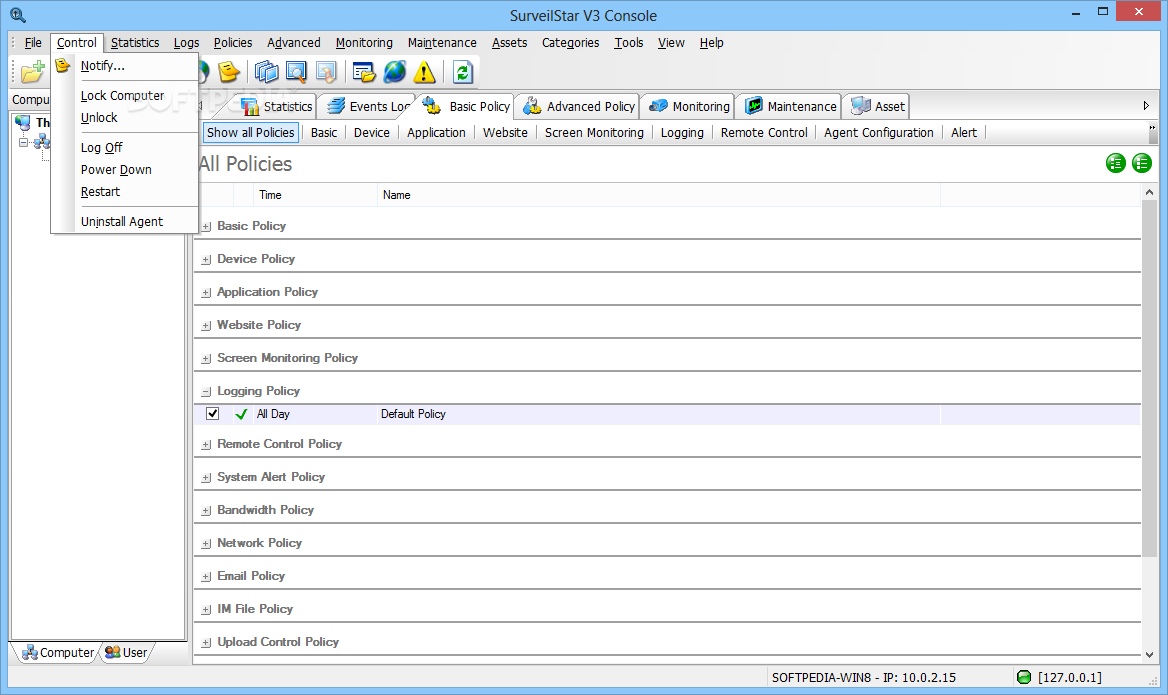 What’s important, SurveilStar puts you in control. Whatever you can monitor, you can control it. You can control certain computer’s access to websites, filter outgoing files via IM, block email attachment, disable removable device drive, cancel unauthorized file sharing, prevent changing system configurations, and many more. You can even lock the target computer if potential sabotage is out there.