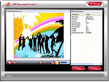 SWF Decompile Expert is the fastest and most reliable solution for users especially to completely decompile any SWF file. With the high-speed decompiling encoder, you really wont find any application that decompiles faster than SWF Decompile Expert!You can export all resources of flash movie and save them to your hard drive. For example, you can export sound and save it as wav or mp3 format; save image as Bmp, jpg, png or pcx format; save video as flv format; save text as txt format; replace the images of current flash; edit the dynamic texts of current flash; change background color of flash file; convert flash files between exe and swf format with excellent quality...and much more!Try SWF Decompile Expert to decompile flash and experience better digital life Now!