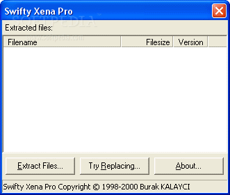 You can download Swifty Xena Pro which is 159.4 KB in size and belongs to the software category Compression tools. Swifty Xena Pro was released on 2006-11-07 and last updated on our database on 2017-02-18 and is currently at version 1.4.
