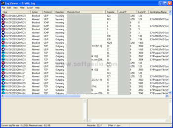 You can also view a traffic log (time, action, severity, direction, protocol, remote host), security, packet and system log, as well as get backtrack information on each program.