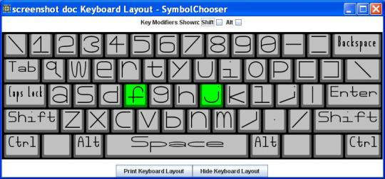 SymbolChooser is a word processor that allows you to insert your own shapes, markings, and symbols into a document just as you would any other letter or number on your keyboard. Creating and inserting custom symbols with SymbolChooser is easier and faster than using font editors, and your created symbols are immediately available in many different fonts and styles.SymbolChooser is also a keyboard layout editor that allows you to specify which symbol is inserted into a document when a particular keyboard key is pressed. The keyboard can be edited to set the keys that are associated with your created symbols and also the keys that are associated with the existing English letters and numbers that can be inserted into SymbolChooser documents as soon as the program is installed.