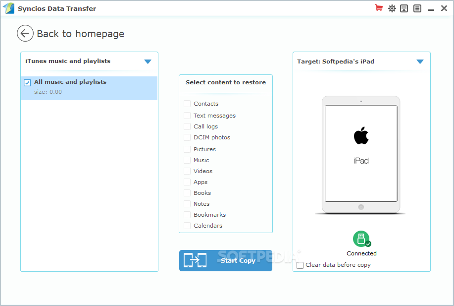 SynciOS Data Transfer allows you to quickly migrate even a large amount of data directly from one phone to another, which makes it a time saving tool. The transfer includes contacts, text messages, call logs, DCIM photos, pictures, music, videos, apps, books, notes and bookmarks.