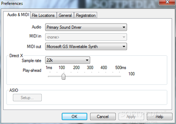 Since the application is dedicated to handling sound, it's a good idea to take your time and configure corresponding options. Depending on connected devices, you can pick audio and MIDI in and out drivers, sample rate, as well as default location for modules, VST plugins and other files.