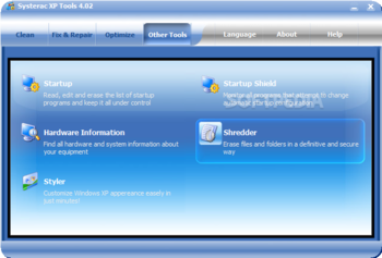 You can download Systerac XP Tools which is 11.18 MB in size and belongs to the software category System Tweak. Systerac XP Tools was released on 2009-11-22 and last updated on our database on 2017-02-25 and is currently at version 4.02.