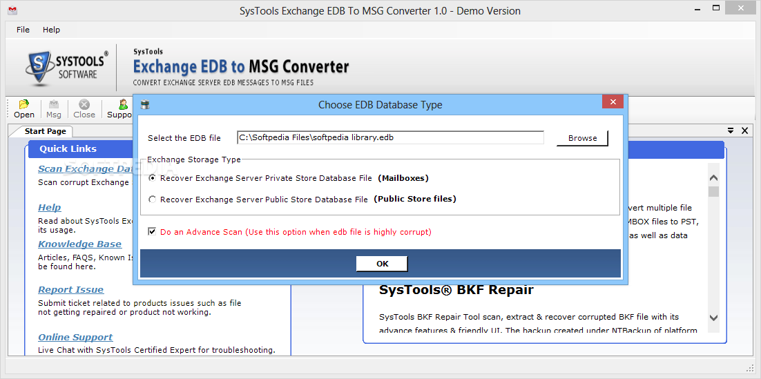 You can download SysTools Exchange EDB to MSG Converter which is 1.69 MB in size and belongs to the software category E-mail. SysTools Exchange EDB to MSG Converter was released on 2015-02-11 and last updated on our database on 2017-04-04 and is currently at version 1.