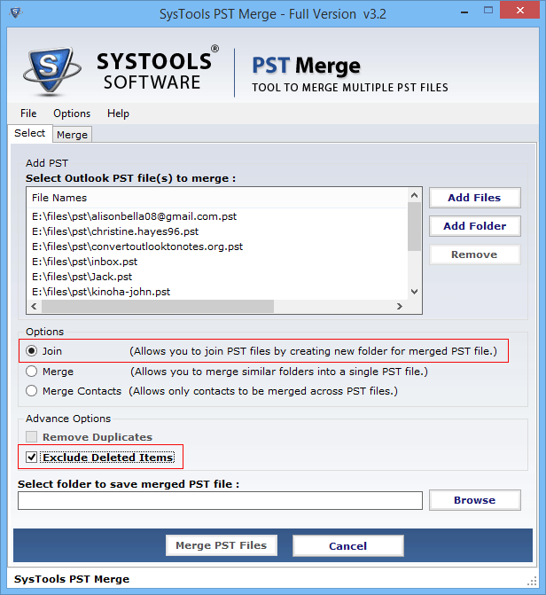 SysTools PST Merge Details