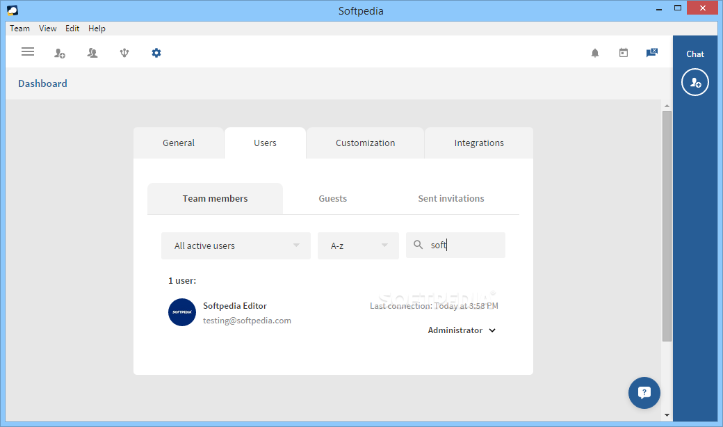 Integrated into the platform, the chat simplifies your team’s communication. You can send as many messages as you want to other members or chat rooms.