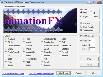 TAnimationFX is a demo software by Chirag Dalal and works on Windows 10, Windows 8.1, Windows 8, Windows 7, Windows 2012.