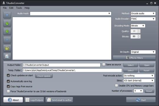 TAudioConverter is an audio converter and extractor. It can convert almost any audio format to aac, ac3, mp3, flac, wav, ogg, opus or mpc. SoX are used to apply effects such as normalization, and volume change. It can also extract audio streams from video files and encode them. It is possible to run up to eight simultaneous processes to shorten encoding time. It features multithreaded, convert audio files to audio files, extract audio files from videos and encode them, copy embedded artwork to output folder, apply effects to audio files, and shell extension to start encoding with right clicking.