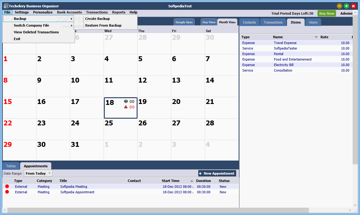 Techelery Business Organizer is a demo software by Techelery Solutions and works on Windows 10, Windows 8.1, Windows 8, Windows 7, Windows XP, Windows 2000, Windows 2003, Windows 2008, Windows Vista, Windows 2012.