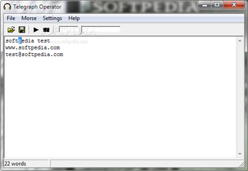 During the sounding of the Morse code each character being transmitted is highlighted in the built-in text editor. The speed of the Morse code can be set from 3 words per