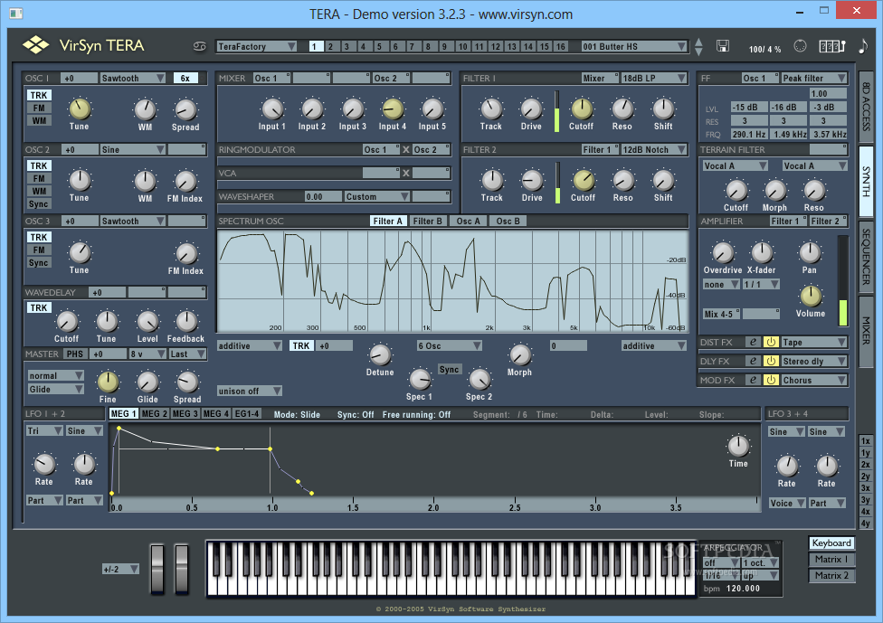 TERA is a software synthesizer designed to provide you with the ability to produce a wide range of sound effects. The program includes a digital synthesizer, mixer and sequencer which can help you generate the audio files required for your projects.