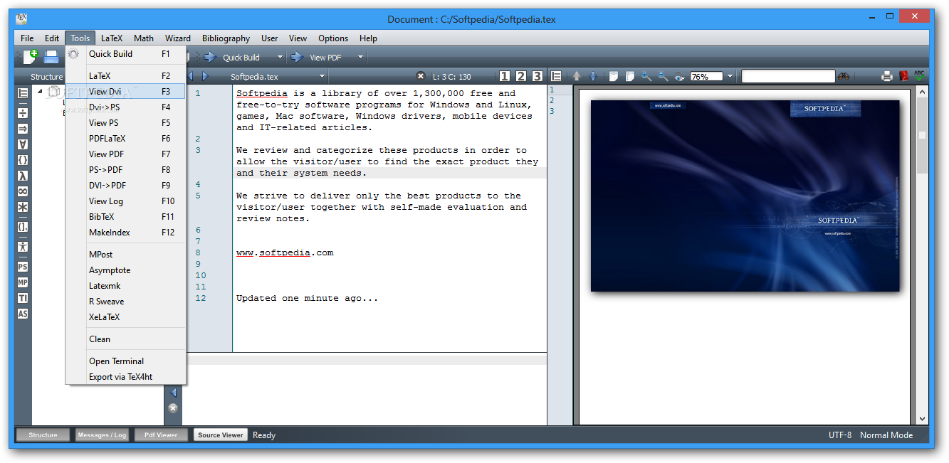 Texmaker is a free software by Pascal Brachet and works on Windows 10, Windows 8.1, Windows 8, Windows 7, Windows XP, Windows 2000, Windows 2003, Windows 2008, Windows Vista, Windows 2012.