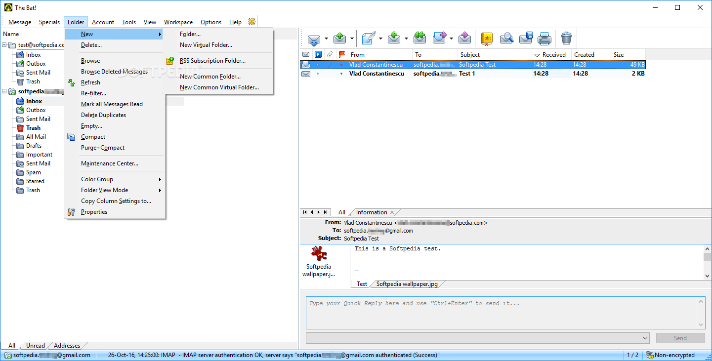 The Bat Professional Edition is a demo software by RitLabs and works on Windows 10, Windows 8.1, Windows 8, Windows 7, Windows XP, Windows 2000, Windows 2003, Windows 2008, Windows Vista, Windows 2012.