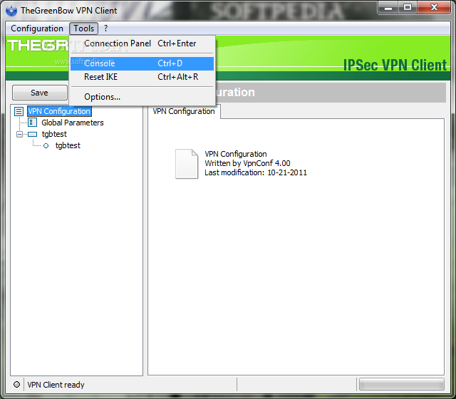 You can download TheGreenBow IPSec VPN Client which is 5.8 MB in size and belongs to the software category Virtual Private Internet. TheGreenBow IPSec VPN Client was released on 2013-04-17 and last updated on our database on 2017-03-08 and is currently at version 5.51.