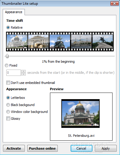 Thumbnailer Lite is a package of Windows Explorer plug-ins, which allows you to modify thumbnail images for video files. You can assign any frame of your video file as thumbnail. Also, you can change the appearance of the thumbnails and give them a shiny uniqe view.Limitations in the unregistered versionWatermarks over thumbnails