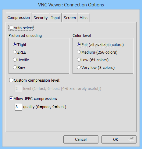 Moreover, for even more control, TigerVNC makes it possible to enter a custom compression level and even allows JPEG compression.