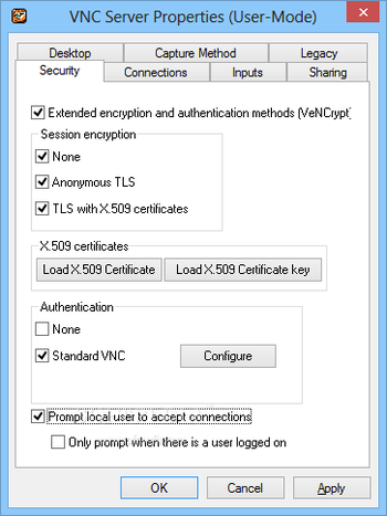 TigerVNC enables you to opt between multiple video encoding types to ensure you get the best quality. It presents you with Tight, ZRLE, Hexztile and RAW options, as well as with full, 256, 64 or 8 color levels to choose from. This in turn makes TigerVNC well suited for running 3D and various video applications.
