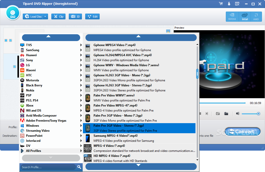 Rip DVD to many mainstream video formats