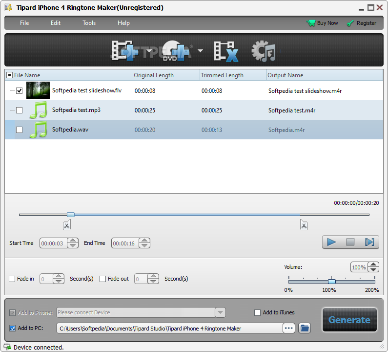 Tipard iPod + iPhone 4G PC Suite is an efficient pack to use when you need to transfer files from your device to the PC, or you want to create your own ringtones. It can backup iPod/iPhone 4 files to PC, PC to iPod/iPhone 4 and make iPhone 4G ringtone.