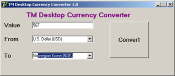 You can download TM Desktop Currency Converter which is 452.82 KB in size and belongs to the software category Business. TM Desktop Currency Converter was released on 2010-07-23 and last updated on our database on 2017-03-09 and is currently at version 1.