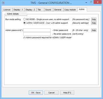 TMS Stein's Backup (Pro) features two functionality modes, designed to ensure the data security: the Admin/User mode and the No Mode. This structure enables you to control the levels of permissions, as well as to block the access of unauthorized users to certain functions.