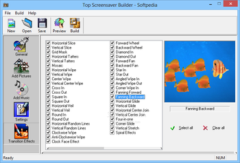 Once you are done with the configuration settings, you can export your final projects to EXE or SCR file format. The EXE file self-installs in your system, while the SCR will have to be copied manually in the screen saver folder. Additionally, Top Screensaver Builder allows you to preview your customized creation and, if you're satisfied with it, just hit 'Build' and the program will export it according to your settings.