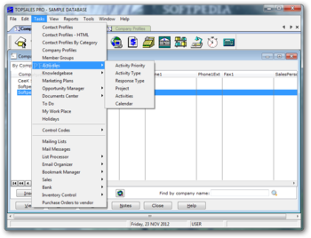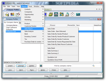 TopSales Professional is a demo software by Ceek Software and works on Windows 10, Windows 8.1, Windows 8, Windows 7, Windows XP, Windows 2000, Windows 2003, Windows 2008, Windows Vista, Windows 2012.