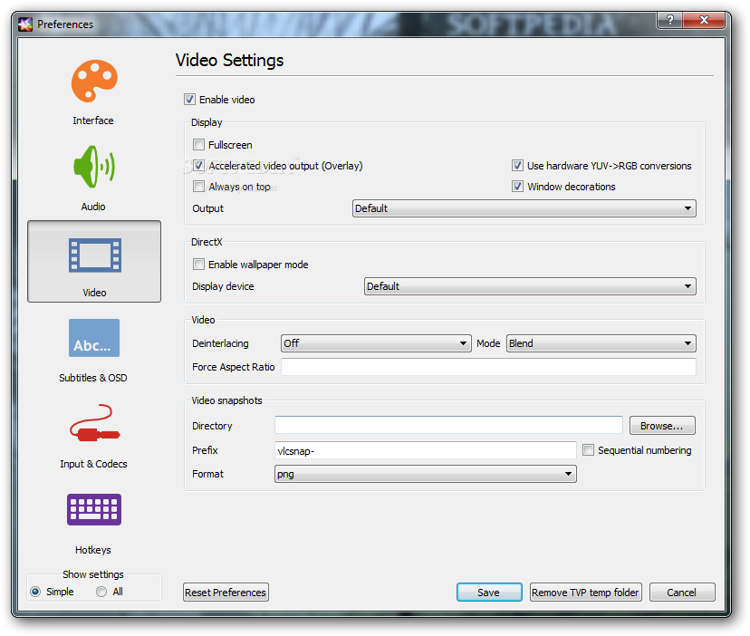 In case you want to modify specific audio and video settings, you can easily navigate to the proper menus. You are able to change the audio channels and device or the video aspect ratio and increase or decrease volume.