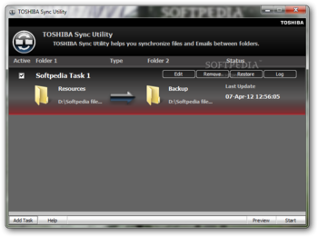 On an ending note, TOSHIBA Sync Utility is a small but powerful and practical application you can use to keep entire folder structures or Outlook emails safe and sound through several synchronization methods. With a careful management of settings put at your disposal effort is reduced to minimum thanks to the scheduler and quick completion of tasks.