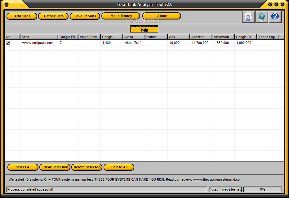 The Total Link Analysis Tool helps with competitive link analysis. What used to take weeks of painstaking, manul work can now be done in minutes with the Total Link Analysis Tool.System requirementsWindows runtime support.