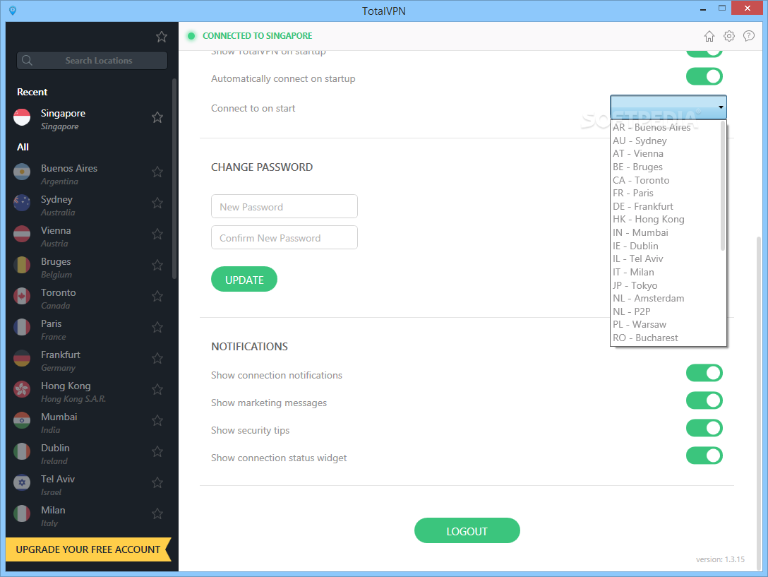 Total VPN is a light utility that enables you to access banned or restricted online content and services in your area safely, anonymously and without compromising on the download and upload speed of your connection.