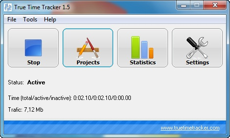 True Time Tracker is free time management software. With it you can learn how you spend your personal or working time. The program starts with Windows and gathers information on applications started, websites visited, various activities over time and consumed traffic. Basing on these data it creates detailed reports. Looking at such report you get comprehensive information of your working day structure, your daily activity and effectiveness of your work. You can learn how many times you interrupted your work, and how much time each particular task took. The built-in project manager allows you to review an overall development cost at a glance. A generated report or an invoice can be printed, saved or exported to PDF with a single click. The program features easy to use, intuitive interface which you can block the access to with a password.