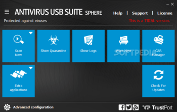 You can download TrustPort Antivirus USB Suite Sphere which is 204.77 MB in size and belongs to the software category Antivirus Antispyware. TrustPort Antivirus USB Suite Sphere was released on 2017-01-02 and last updated on our database on 2017-04-22 and is currently at version 2017.