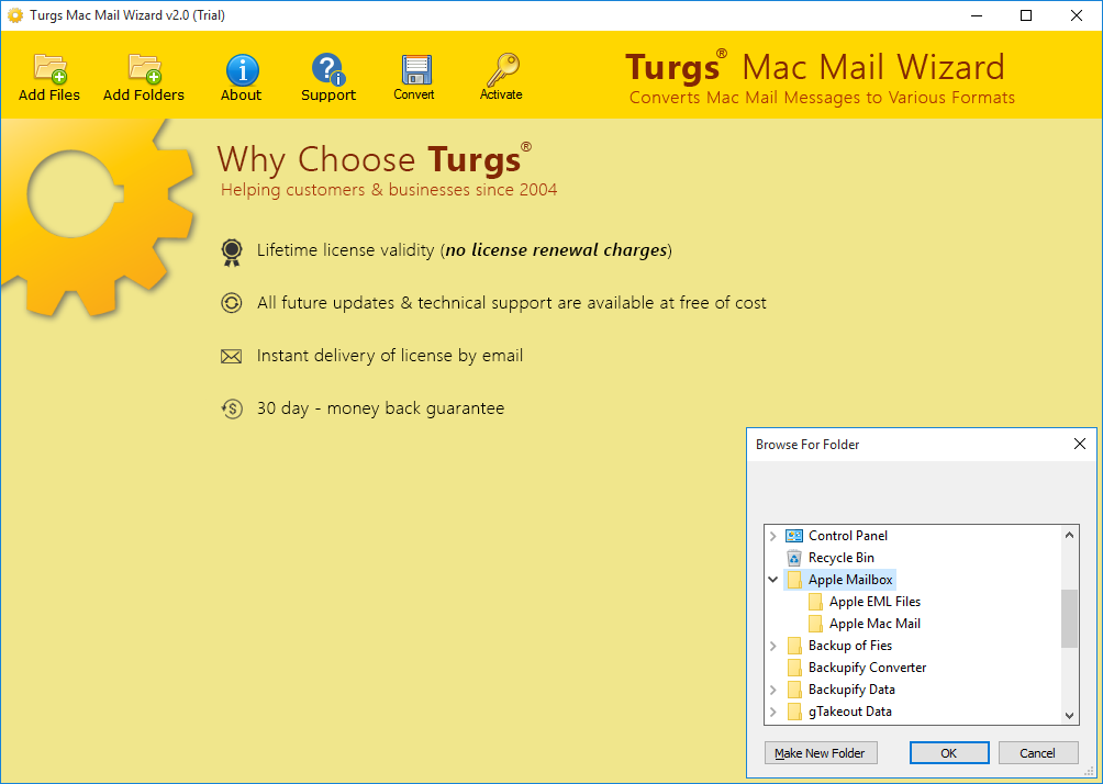 Turgs Mac Mail file converter is an easy solution to convert Mac Mail database to different file formats such as PST, MSG, EML, EMLX, PDF, MBOX, HTML, MHT, XPS, RTF, and DOC file formats. Along with that it provides many other benefits also to manage Mac Mail database in an appropriate manner. It easily recovers Apple Mac Mail database whether it is in corrupted or encrypted form. It supports both Mac Mail MBOX and EML files to convert in any file format. If you have multiple files then, it can be easily merged in single file format. You can merge both MBOX and EML files into single PST or MBOX format.