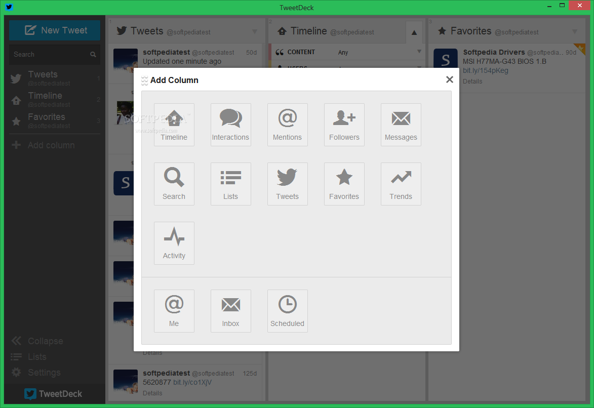 TweetDeck is a free software by Twitter and works on Windows 10, Windows 8.1, Windows 8, Windows 7, Windows 2012.