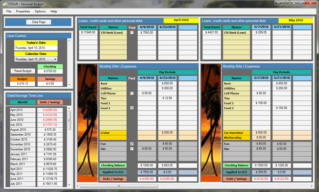 Personal Budget is one of the easiest software programs you will ever find for managing your personal finances. This tool makes it very easy to create a simple budget you can use to keep track of your monthly bills, loans and expenses. Update your balances daily and check down when you have paid your bills to get a real time view of your expenses and how far you have deviated from your original budget goals. You can track where your money is being spent, how much is left and plot a time line of how long it will take you to pay off your debt or reach a savings goal if you follow the budget.