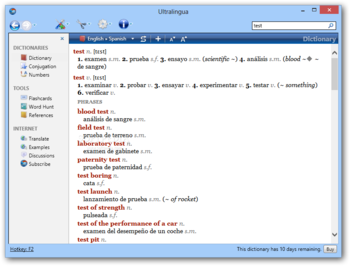 Ultralingua Spanish-English Dictionary is a demo software by Ultralingua and works on Windows 10, Windows 8.1, Windows 8, Windows 7, Windows XP, Windows 2000, Windows 2003, Windows 2008, Windows Vista, Windows 2012.